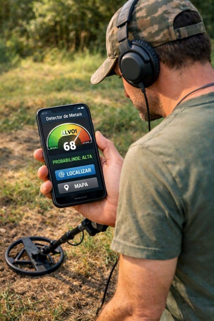 No entanto, é vital entender as limitações técnicas. O sensor magnético dos celulares tem alcance limitado, geralmente detectando metais a poucos centímetros de profundidade. Detectores profissionais penetram muito mais fundo no solo.